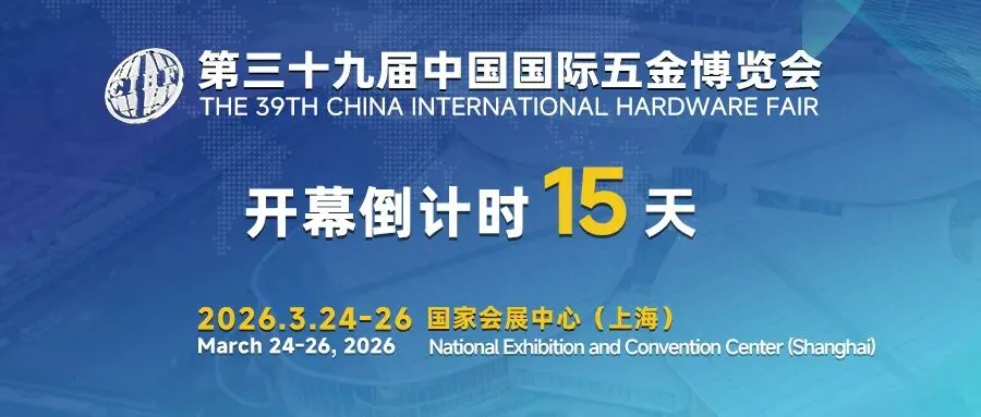 距第三十九届中国国际五金博览会启幕仅剩15天。三月沪上春意浓,正是相聚好时节。2026年3月24-26日,这场五金机电行业的开年盛事将在国家会展中心(上海)拉开帷幕。我们满怀期待,诚邀新老朋友相聚上海,在繁花似锦的季节里,共话行业未来,共享发展机遇。