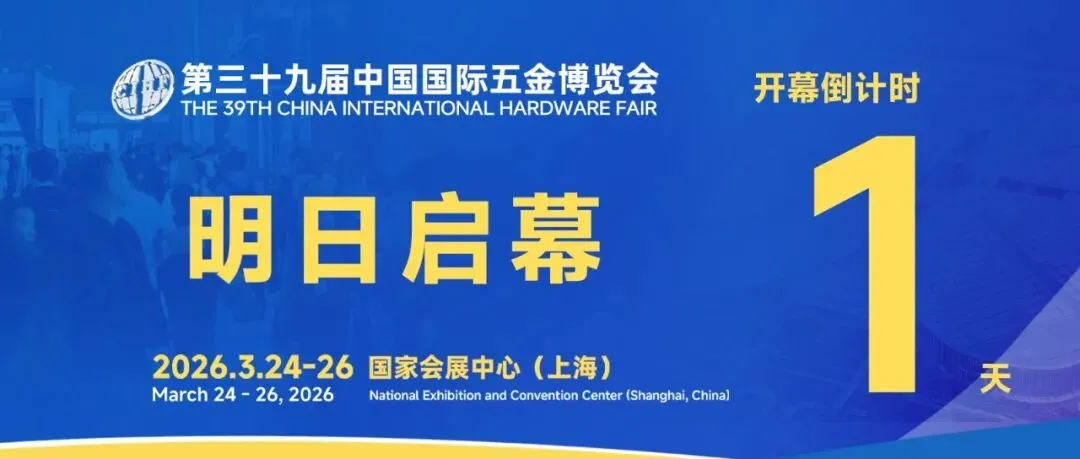 距离第三十九届中国国际五金博览会开幕仅剩1天时间!观众预登记通道即将关闭,即刻注册抢占先机。